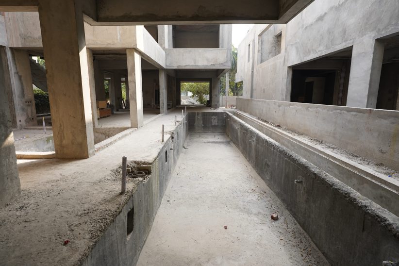 Complete structural construction of cinema theatre, multimedia hall, and bar area space (grey structure only).